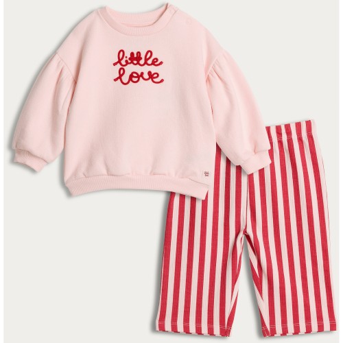 2-Piece Cotton Rich Little Love Sweatshirt and Striped Bottoms Set in Pink