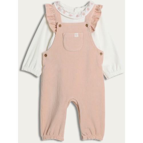 Cotton Rich Ribbed Dungarees and Bodysuit Set in Pink