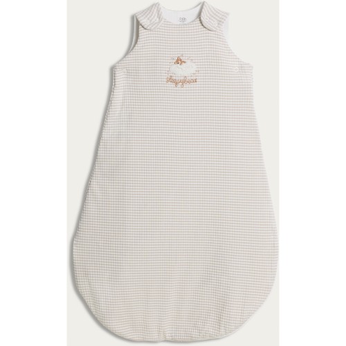 Cotton Rich Textured Stripe Sleepy Bear 2.5 Tog Sleeping Bag in Stone