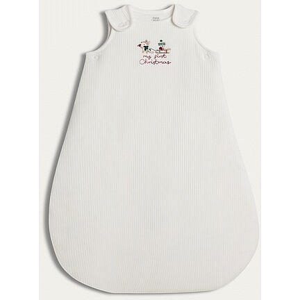Cotton Rich Ribbed My First Christmas 2.5 Tog Sleeping Bag in White