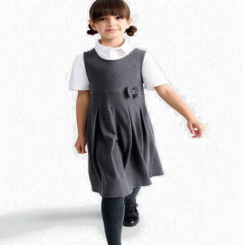 F&F School Girls Cotton Rich Bow Detail Pinafore in Grey