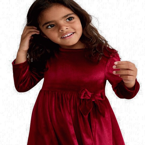 F&F Girls Velour Long Sleeved Bow Dress in Red