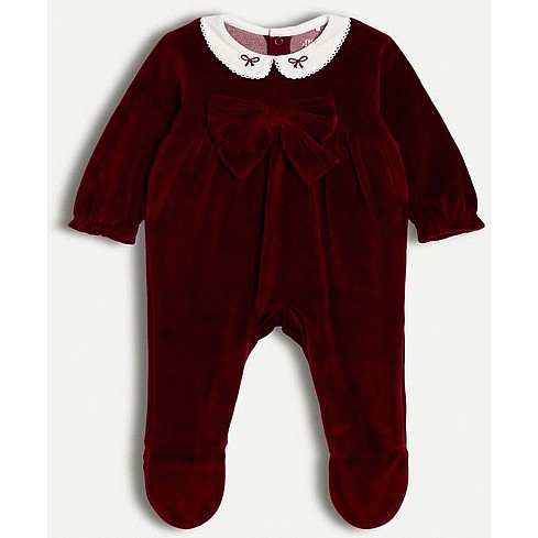 Cotton Rich Velour Bow Accent Sleepsuit in Purple