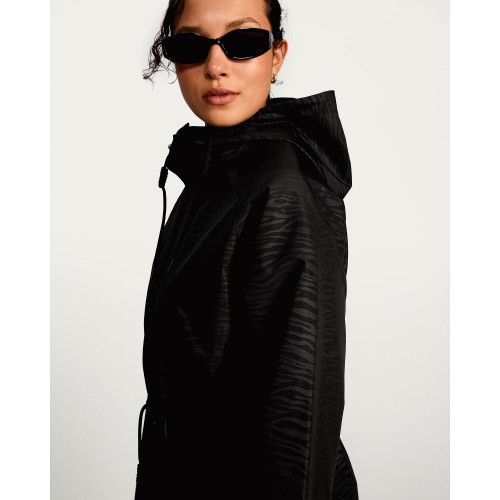 Animal Print Shower Resistant Hooded Raincoat in Black
