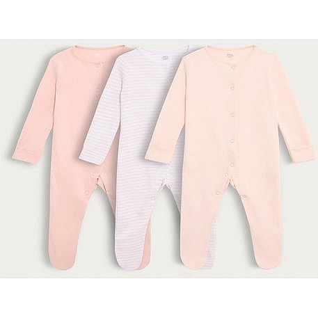 3-Pack Pure Cotton Zip Fastening Sleepsuits in White