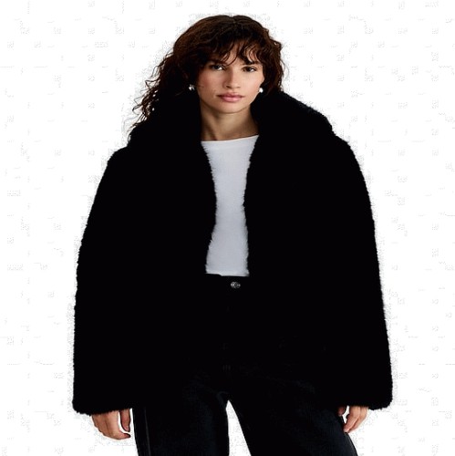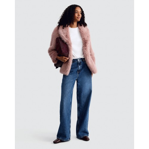 F&F Girls Faux Fur Hooded Jacket in Pink