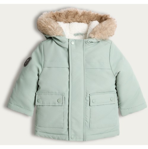 Faux Fur Hooded Shower Resistant Parka in Green