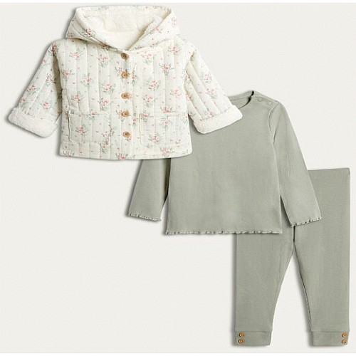 3-Piece Quilted Jacket Ribbed Top and Leggings Set in Cream