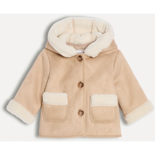 F&F Baby Faux Fur Hooded Padded Jacket in Cream