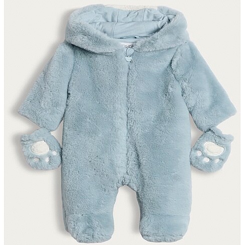 Fleece Bear Detail Hooded All-In-One in Multi Blue