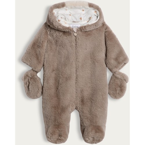 F&F Baby Fleece Bear Detail Hooded All-In-One in Brown