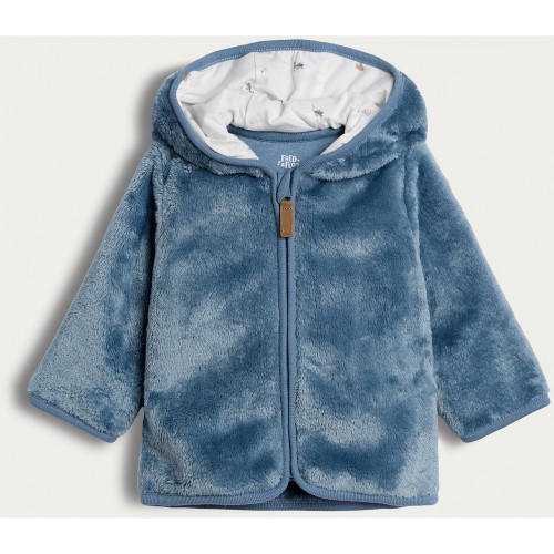 Fleece Bear Detail Hooded All-In-One in Multi Blue