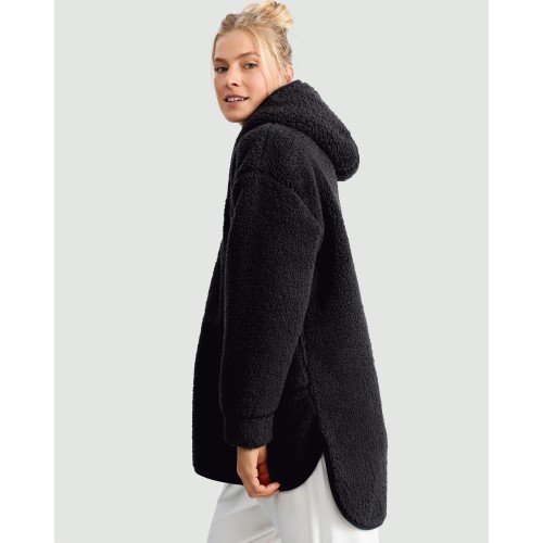 Fleece Pocket Front Hooded Pyjama Jacket in Grey