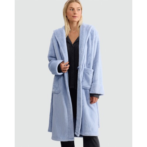 Fleece Hooded Dressing Gown in Blue