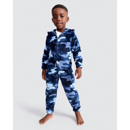 Camouflage Fleece Hooded Onesie in Blue