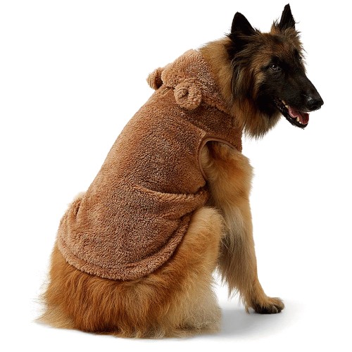 Cuddly Bear Ears Sherpa Fleece Dog Hoodie Tan