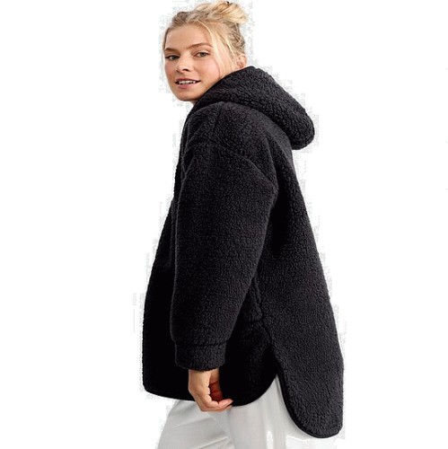 Borg Textured Animal Pocket Hooded Jacket in Brown
