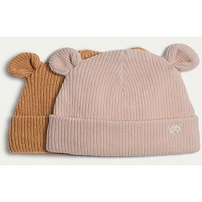 Baby 2-Pack Ribbed Bear Ear Beanie Hats in Multi