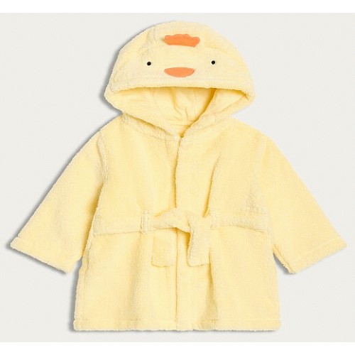 Pure Cotton Duck Hooded Dressing Gown in Cream