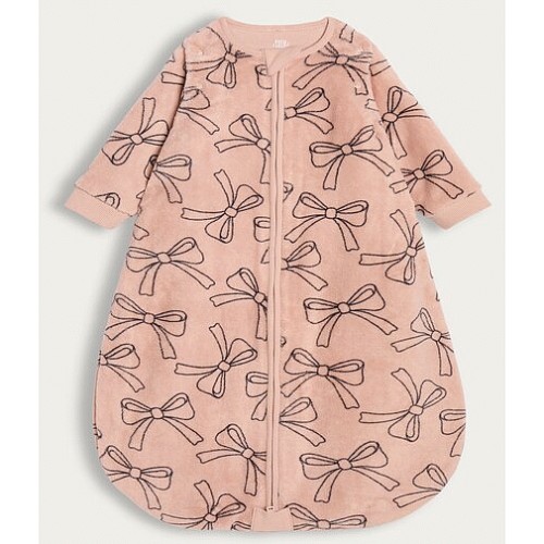 Fleece Bow Print 1.5 Tog Sleeping Bag in Pink