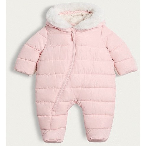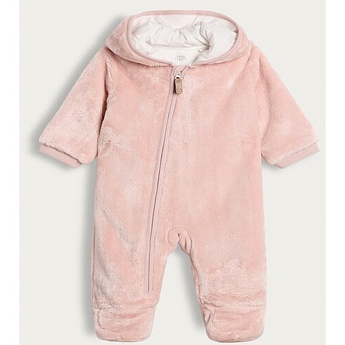 Cosy Fleece Zip Front Ear Hooded Pramsuit in Pink