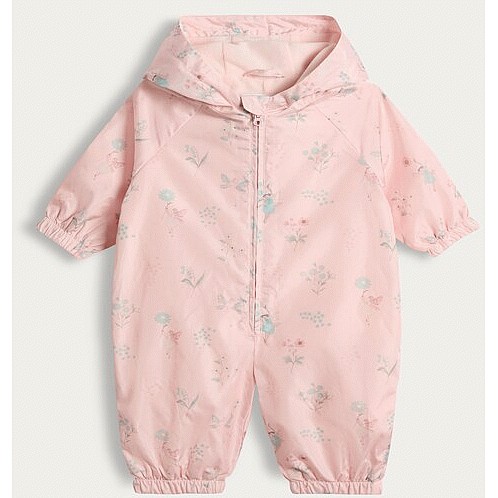 Fleece Lined Floral Print Shower Resistant Puddlesuit in Pink