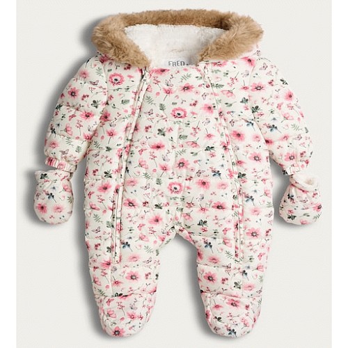 Padded Floral Print Shower Resistant Pramsuit in Multi