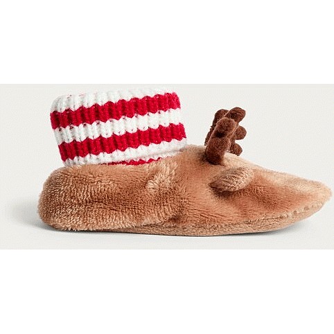 Baby Fleece Reindeer Ribbed Booties in Multi