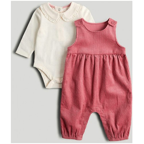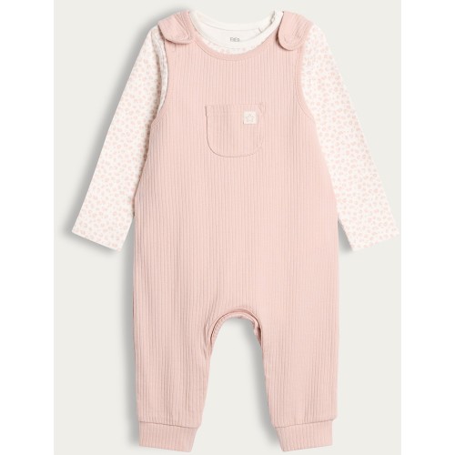 Cotton Rich Ribbed Dungarees and Bodysuit Set in Pink