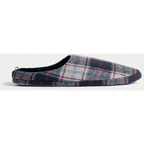 Fleece Lined Check Print Mule Slippers in Navy