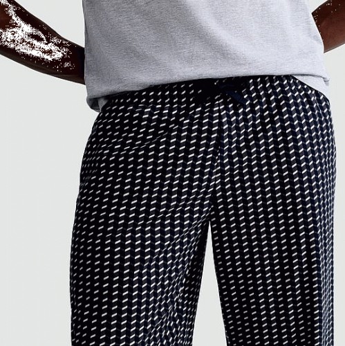 Geometric Print Fleece Drawstring Pyjama Bottoms in Navy