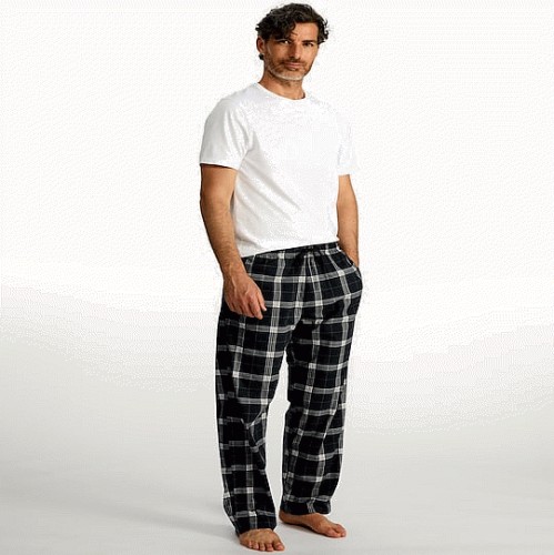 Check Print Fleece Pyjama Bottoms in Navy