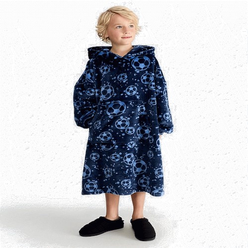Boys Fleece Football Print Pyjama Hoodie in Navy