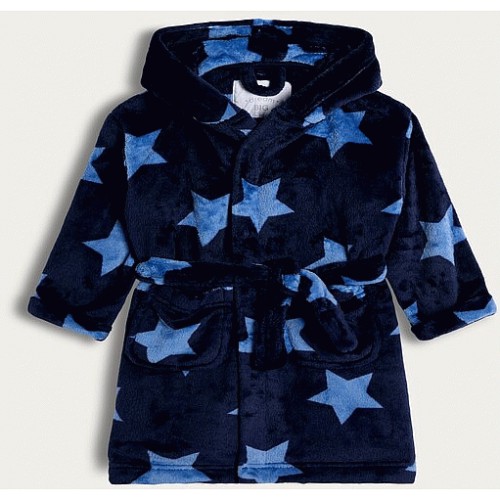 Boys Brushed Fleece Star Print Dressing Gown in Navy