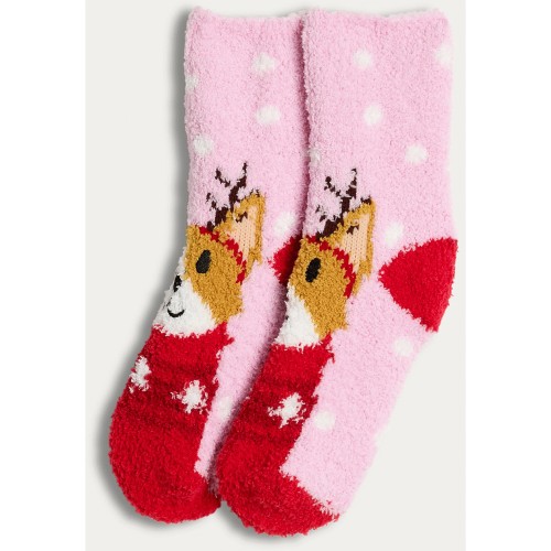 Girls Fluffy Dog Reindeer Cosy Socks in Multi