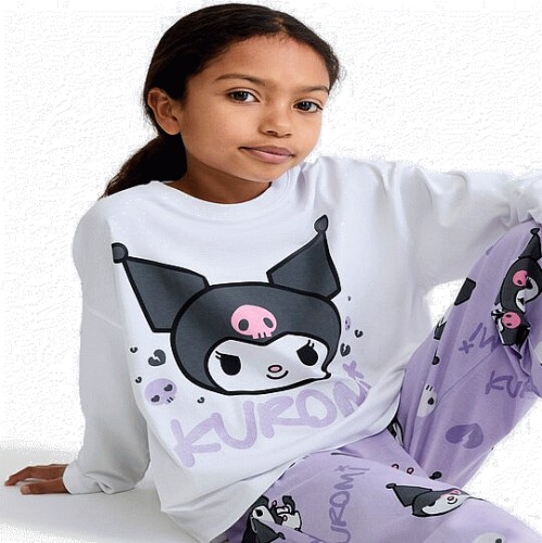 Kuromi Print Top and Trousers Pyjamas in Purple