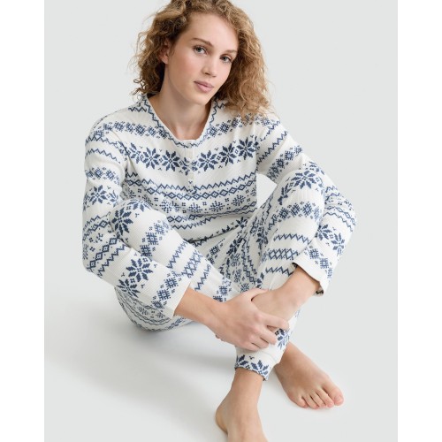 Fair Isle Print Top and Joggers Pyjamas in Cream