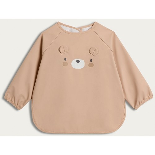 Bear Print Baby Long Sleeved Bib in Med Nude
