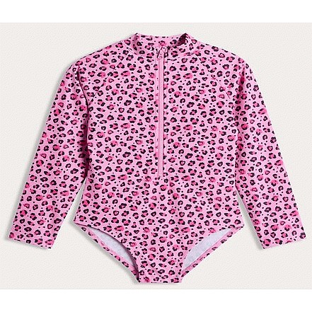 F&F Girls Leopard Print Long Sleeved Swimsuit in Pink
