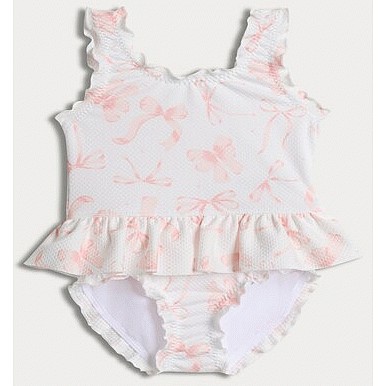 F&F Baby Textured Bow Print Frill Trim Swimsuit in Cream
