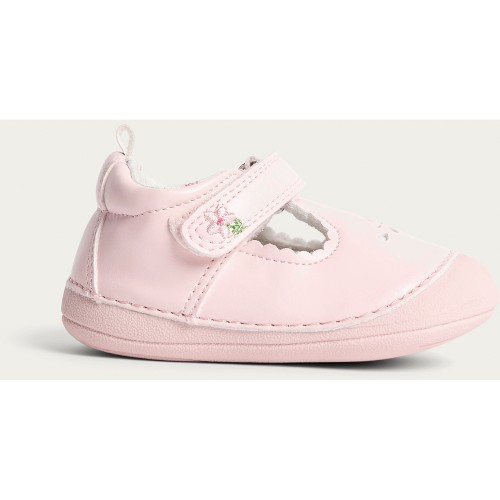 Floral Embroidered Strap Touch Fastening Pre Walker Shoes in Pink