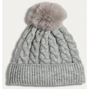 Cable Knit Pom Pom Beanie Hat in Grey