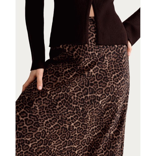 Leopard Print Midi Skirt in Multi Brown