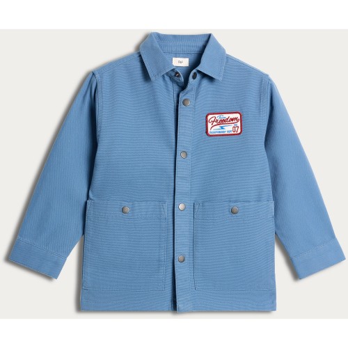 F&F Boys Pure Cotton Collared Shacket in Blue