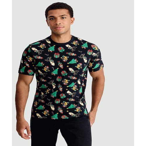 Pure Cotton Festive Print Short Sleeved T-Shirt in Navy