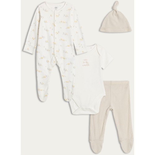 F&F Baby Pure Cotton Duck Print Sleepsuit and Comforter Set in White