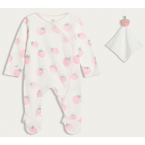 Pure Cotton Strawberry Print Sleepsuit with Comforter in White