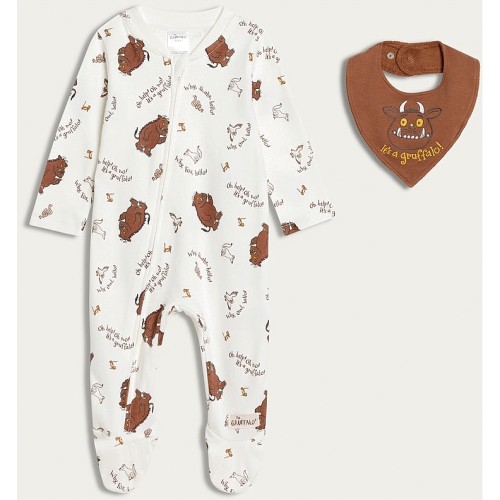 The Gruffalo 2-Piece Pure Cotton Long Sleeved Sleepsuit and Bib Set in White