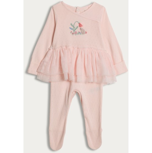 Bunny Embroidered Tulle Sleepsuit in Pink
