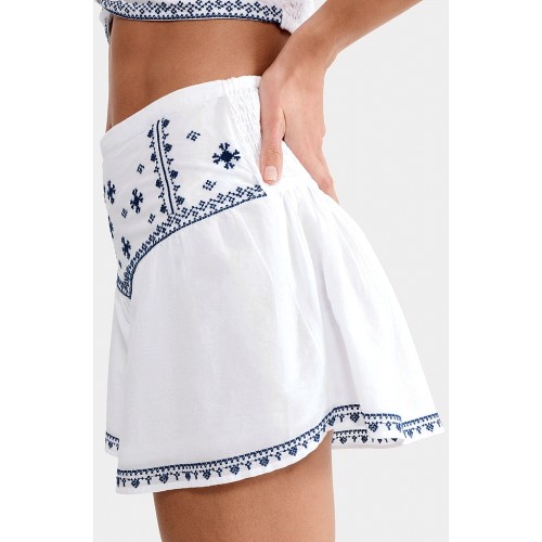 Pure Cotton Embroidered Cropped Blouse in Blue